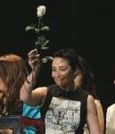 La propia Goirizelaia alzó una rosa blanca al salir al escenario y traducir al euskera las palabras de agradecimiento del portavoz de Ahotsak.