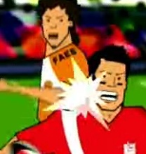 Durante la jugada, un miembro del equipo popular con la palabra ETA en su brazo se abalanza contra un jugador socialista con el propósito de derribarle; poco después, otro jugador el PP con la palabra FAES escrita en su hombro da un codazo en la cara a su contrincante de JSE.
