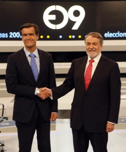 (Libertad Digital) Mayor Oreja intentó que el debate se centrase en la confrontación de argumentos pero se encontró a un López Aguilar más agresivo que respondía una y otra vez con las habituales consignas del PSOE. Además, el formato del debate –con intervenciones de apenas 1 minuto– favorecía la estrategia demagógica de López Aguilar. Una de las palabra más repetidas por el socialista fue "Bush", lo que ya resulta más que revelador. Mayor tuvo que adaptarse al formato y al estilo de su rival, y no le faltaron reflejos como muestra el titular de esta noticia.
