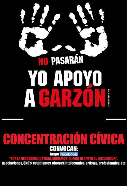 Esta manifestación se realiza en el marco del encierro de apoyo al juez de la Audiencia Nacional Baltasar Garzón, que se mantiene desde el día 14 en la Escuela de Relaciones Laborales de la Universidad Complutense de Madrid y tiene previsto finalizar el 23 de abril.