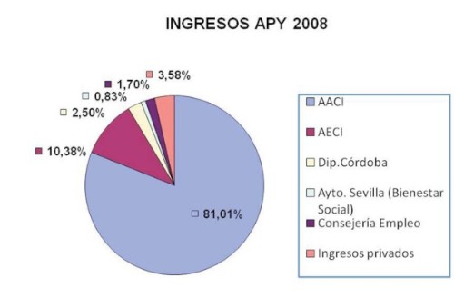 En cuanto a sus ingresos, recordemos que la "otra", Equipo Solidaridad Internacional de Andalucía", ingresaba casi 3,5 millones de euros anuales procedente en su inmensa mayoría de las instituciones gobernadas por el PSOE. La Fundación maneja casi dos millones de euros, según su Memoria de 2008, pero la procedencia de todo su dinero es la que sigue: