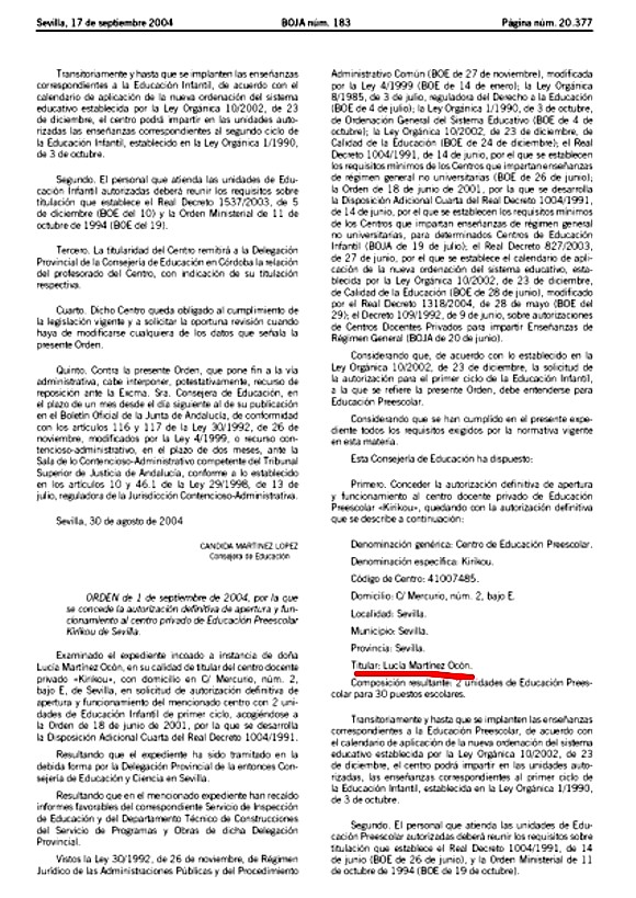 Y hay una Lucía Martínez Ocón que recibe, como Vicky, una concesión de la Junta para una Guardería.