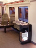 Papelera de un vagón de cercanías de Madrid. Puede apreciarse el tamaño en comparación con los asientos plegables. Foto incluida en el informe Lookfor. El informe completo puede consultarse en el Fondo Documental elaborado por los participantes en el blog de Luis del Pino.