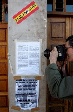 (Libertad Digital) Los cachorros de ETA siguen amenazando a Emilio Gutiérrez, víctima de la bomba de Lazcano que, desesperado, atacó una "herriko taberna". Según ha denunciado su tío Miguel Ángel Gutiérrez en Onda Cero, los proetarras vigilan con total tranquilidad los alrededores de su inmueble así como su vehículo. La Ertzaintza, conocedora de estos hechos, ha recomendado que ningún familiar se acerque hasta el domicilio, pero no ha tomado medidas contra ellos.