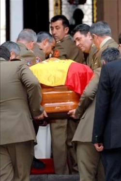 El coche fúnebre con los restos del brigada llegó a las 19.40 horas a las puertas del centro de enseñanza militar, donde le esperaban miembros de su familia, el director de la Academia, el general Ricardo Sotomayor; el delegado del Gobierno, Miguel Alejo; la subdelegada del Gobierno en Segovia, María Teresa Rodrigo Rojo, y el alcalde de la ciudad, Pedro Arahuetes, entre otras autoridades.