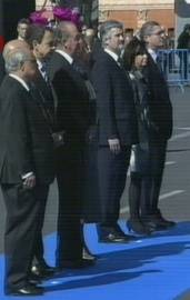 El acto, solemne y austero, apenas ha durado unos diez minutos y en él no se ha pronunciado ningún discurso. Don Juan Carlos y doña Sofía han colocado una corona de flores a los pies del monumento y han guardado un emotivo minuto de silencio. Al homenaje también han acudido el presidente del Gobierno así como las más altas instituciones del Estado. Los familiares de las víctimas también han tenido un lugar reservado frente al monumento, aunque algunas de las sillas quedaron vacías.