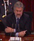 El diputado de Esquerra Republicana de Cataluña (ERC), Joan Tardá, hizo una pregunta a la vicepresidenta del Gobierno sobre la reforma de los estatutos íntegramente en catalán. Seguidamente, el presidente del Congreso le apuntó que "falta una parte de su discurso".
