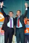 L D (Agencias) El alcalde de Zaragoza, Juan Alberto Belloch participó en el auditorio de esta ciudad en el acto central de la camapaña socialista para pedir el sí en el referéndum, donde también intervinieron el presidente del gobierno, José Luis Rodríguez Zapatero, y el canciller alemán Gerhard Schroeder, que esta vez sí acudió a su cita con Zapatero.
