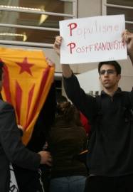 Antes de ese momento se vivieron otros momentos de tensión, con empujones incluidos, entre los agentes y una decena de esos jóvenes, que llevaban carteles con lemas como "Els Països Catalans no son Espanya" (Los países catalanes no son España) y que pretendían impedir la entrada de Nadal en el aula de la Universidad Pompeu Fabra.