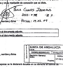 Lo impidió, como siempre, ejercitando el rodillazo parlamentario socialista en los bajos vientres de la oposición. La Comisión había sido solicitada por el PP e IU, para aclarar las posibles irregularidades de la ayuda concedida por el Gobierno que presidía Manuel Chaves a una empresa apoderada por su hija Paula. Poco antes, el PP había mostrado el papelito decisivo de la presencia de Paula Chaves en la tramitación de la subvención, en calidad de apoderada, ese apoderamiento que Chaves dijo en un primer momento desconocer. Pues aquí está la firma de Paula Chaves en el documento oficial: