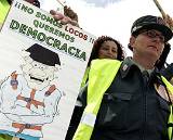En su primera gran manifestación en 160 años de historia, los guardias civiles y sus familiares no pararon de aplaudir y corear consignas, siendo las más repetidas 'democracia', 'libertad' y 'Zapatero, embustero'. Así interrumpieron los discursos de los líderes de UGT y CCOO, Cándido Méndez y José María Hidalgo, respectivamente, del presidente de Eurocop (asociación que aglutina a sindicatos policiales de 21 países europeos y que suma 600.000 afiliados en total), Heinz Kiefer, de los representantes de la práctica totalidad de sindicatos policiales de otros cuerpos y de otras asociaciones de la Benemérita.
