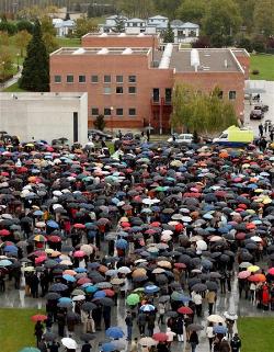 La concentración silenciosa, que duró cinco minutos, aglutinó a numerosos alumnos, profesores y empleados del centro, además de representantes de las Instituciones forales. El acto terminó en un prolongado aplauso. Entre los asistentes se encontraban el presidente del Gobierno de Navarra, Miguel Sanz, la delegada del Gobierno, Elma Sáiz, la presidenta del Parlamento, Elena Torres, la alcaldesa de Pamplona, Yolanda Barcina, el rector de la Universidad de Navarra, Ángel Gómez Montoro y el rector de la Universidad Pública de Navarra, Julio Lafuente.