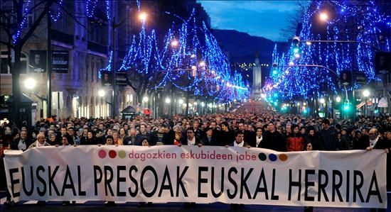 La manifestación, que dio comienzo pasadas las 17:30 horas de la tarde, fue convocada por las formaciones nacionalistas EA, Aralar, la escisión de IU Alternatiba, Abertzaleen Batasuna (escisión de Batasuna en Francia) y dirigentes batasunos como Tasio Erquicia y apoyada por los sindicatos ELA y LAB, después de que la Audiencia Nacional prohibiese la impulsada a la misma hora y mismo día por la asociación de familiares de presos de ETA, Etxerat.