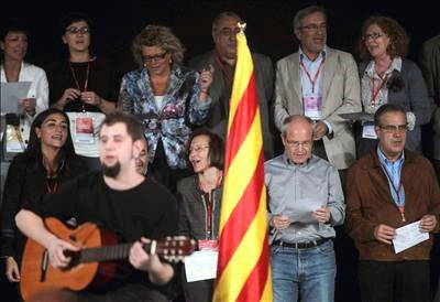 Tras estas palabras, han subido al escenario dos delegados del PSC que han cantado "Mediterráneo" junto con el resto de delegados. Al fondo del escenario, Montilla y otros miembros destacados de la lista para las autonómicas, como Montserrat Tura, Celestino Corbacho, Marina Geli y Miquel Iceta, han cantado la canción con la letra en la mano.