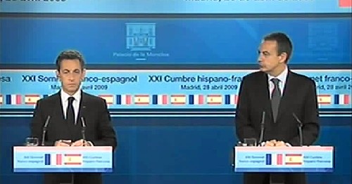 Por su parte, Nicolas Sarkozy ha dicho que estaba "completamente de acuerdo" con todo lo afirmado por el presidente español, por lo que "no voy a repetirlo". Ha agradecido, en nombre de Carla Bruni y su delegación, la acogida de los madrileños: "hemos estado muy conmovidos".