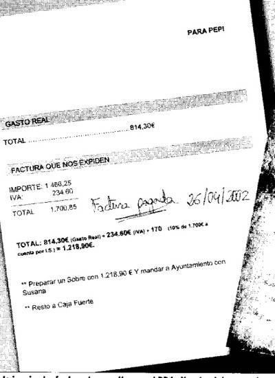 Josefa Prado, la famosa "Pepi" del documento, fue receptora del famoso fax denunciado por el PP con las instrucciones para elaborar una factura falsa y guardar "el resto" del dinero en la caja fuerte de la entidad. Pero ayer, la ex contable al servicio del PSOE, presionada por vaya usted a saber quién, dijo no recordar quién le envió el documento, pese a que ella anotó en el mismo la expresión "factura pagada". Pero además confesó que las facturas se duplicaban para pedir subvenciones distintas por la misma tarea, pero que no se falsificaban. De Jaimito.
