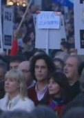 Distintos personajes públicos, significados por su apoyo a la negociación con la banda terrorista y sus ataques al PP, han actuado como pregoneros de la manifestación en un formato de publicidad radiofónica, una iniciativa excepcional en RNE que, como es sabido, no emite publicidad.