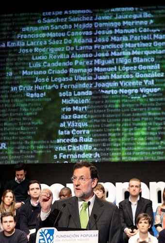 Allí, el presidente del Partido Popular, Mariano Rajoy, ha asegurado que "hay que impedir que las franquicias de ETA usen de las instituciones para conseguir sus fines y por eso no queremos que se presenten a las elecciones mientras ETA exista", según recoge Efe.