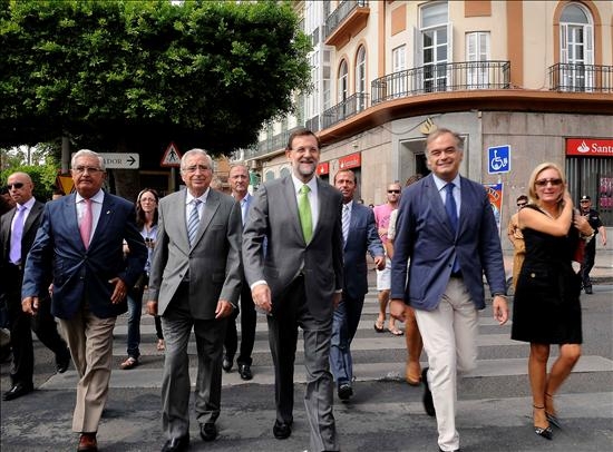 Previamente, Rajoy aterrizaba en el pequeño aeropuerto de la ciudad bajo una fuerte presencia policial. Y es que, ante la amenaza de colectivos marroquíes de boicotear la visita -ya a primera hora se había colgado carteles ofensivos en la frontera-, la Delegación del Gobierno decidió reforzar la vigilancia. Sin embargo, lo que se dio el presidente de los populares fue un auténtico baño de multitudes.