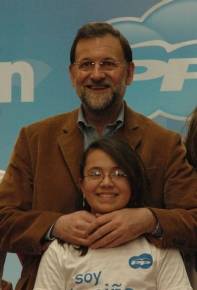 Un grupo de jóvenes subió al escenario vistiendo camisetas blancas con el lema "Soy la niña de Rajoy" y se han fotografiado con el presidente de los populares. Una de las chicas tambiém tomó el micrófono para señalar: "Me llamo Victoria. Cumplo 18 años el día de las elecciones y mi voto es para tí". Después corearon 'Victoria, Victoria' y lemas como 'Mariano amigo, Valencia está contigo' o 'Oa, oa, oa, Mariano a La Moncloa'.