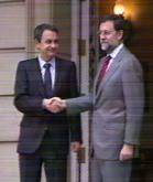 Es la primera reunión de Zapatero y Rajoy tras el atentado de ETA. El mismo día de la bomba, que acabó con la vida de dos ecuatorianos, el presidente del Gobierno y el líder de la oposición conversaron por teléfono. También lo hicieron el pasado día 2, horas antes de que Rajoy visitara la zona del atentado.