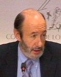 El portavoz parlamentario socialista, Alfredo Pérez Rubalcaba, en una rueda de prensa en el Congreso Rubalcaba leyó un comunicado en nombre de la dirección federal del PSOE en el que se valora "positivamente" el comunicado de alto el fuego permanente anunciado hoy por ETA.
