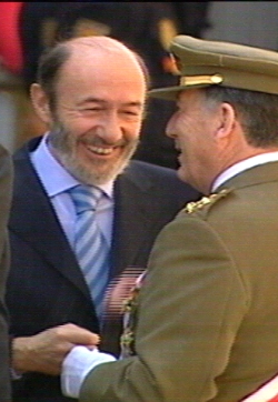 Tras los honores militares, los Reyes saludaron a la delegación de autoridades, encabezada por Rubalcaba, el presidente del Gobierno de Aragón, Marcelino Iglesias, y el alcalde de Zaragoza, Juan Alberto Belloch. Toda la cúpula militar y ministerial asistió a la parada, que cada año se celebra coincidiendo con la festividad de San Fernando y que cumple su vigésima primera edición.