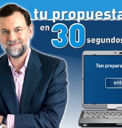 Para enviar un vídeo, hay que acceder a la página web del PP (www.pp.es) y allí pinchar en el icono "Haz tu propuesta en 30 segundos". Tras introducir el nombre y el número de móvil, se accede a un vídeo de Mariano Rajoy y su equipo, en el que el líder del PP hace un repaso de los asistentes a la reunión y, curiosamente, en ese listado figura el nombre que acabas de introducir, destacado en rojo.