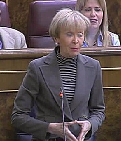 De este modo, la portavoz dijo que "si tiene la tentación de hablar de presidentes autonómicos pregunte a Chaves sobre las ayudas a la familia". Así, también criticó que Zapatero use aviones del Ejercito para trasladarse al mitin de su partido en Sevilla.