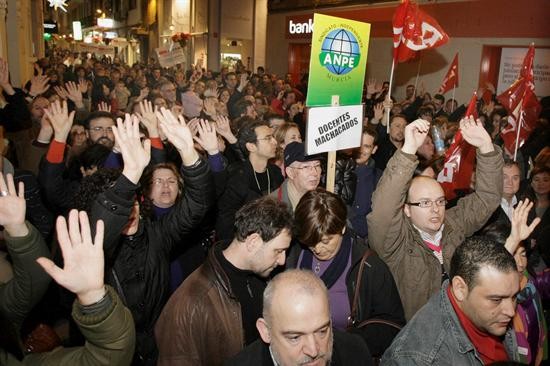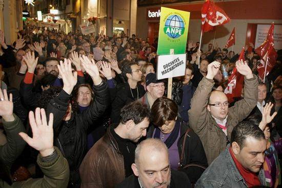 La razón de esta concentración ilegal fue el anuncio de la presentación hoy en la asamblea regional de una ley de medidas urgentes para reducir el gasto público de la comunidad autónoma, cuyas disposiciones afectan especialmente al sueldo y las condiciones laborales de la mayoría de funcionarios públicos.