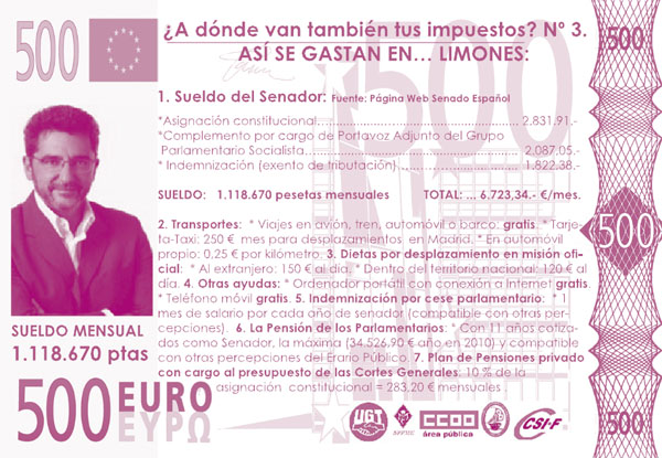 UGT,CC.OO e incluso CSIF están contra la gestión del alcalde y senador al que acusan, entre otras cosas, de despilfarro de recursos públicos.