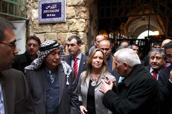 La jefa de la Diplomacia española inició este lunes la que es su primera gira por Israel y los Territorios Palestinos con el objetivo de animar a ambas partes a que "vuelvan a la mesa de negociaciones" cuanto antes. Este martes, ha visitado el casco histórico de Hebrón, rehabilitado con financiación de la Agencia Española de Cooperación Internacional para el Desarrollo (AECID).