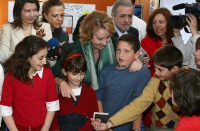 El pequeño le preguntó " por qué decíais que no estabais de acuerdo con Rajoy ", a lo que ella respondió: "Sí que estamos de acuerdo. Quien no estará nada de acuerdo es Zapatero" y aclararle a continuación que lo que ocurre es que "en España hay dos partidos".El pequeño contestó "es verdad". Otra espontánea comentó que el presidente del Gobierno " se parece a Mister Bean ", lo que suscitó las risas de sus compañeros de clase y de todos los que presenciaron esta anécdota. " Sois unos genios ", comentó la presidenta.