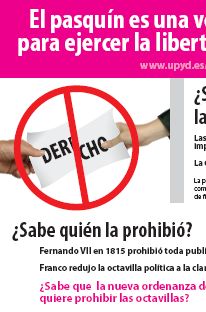 Ahora, UPyD ha anunciado que montará mesas informativas en la capital este fin de semana del 25 y 26 de octubre en las que repartirá pasquines contra el proyecto de ordenanza de publicidad porque creen que "el pasquín es una versión civilizada para ejercer la libertad de expresión" y que lejos de ser sólo un papel, "es un derecho".