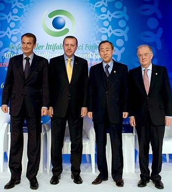 Para la primera foto han posado el primer ministro turco, Recep Tayyip Erdogan, copatrocinador de la iniciativa de la Alianza de Civilizaciones junto con Zapatero, que es de quien partió la idea de este proyecto; el secretario general de la ONU, Ban Ki Moon, y el primer ministro danés, Anders Fogh Rasmussen, entre otros. Por parte española estuvo presente el ministro de Asuntos Exteriores y de Cooperación, Miguel Angel Moratinos.