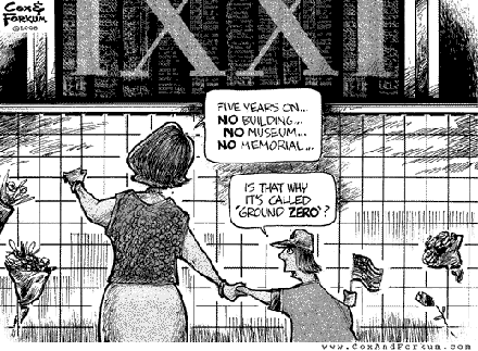 Viñeta inspirada en los continuos retrasos que está sufriendo el planeado monumento conmemorativo a las vícitimas del 11-S