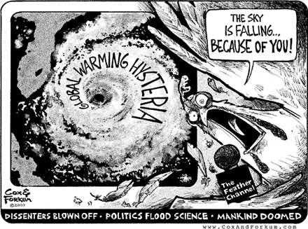 Viñeta inspirada por una presentadora del canal The Weather Channel, que escribió que debería negarse la licencia a aquellos meteorólogos que no estuvieran de acuerdo con la teoría del calentamiento global debido a la acción del hombre.