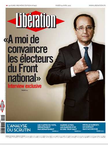 Numerosas publicaciones en España han sacado titulares en los que dan por sentado que Nicolas Sarkozy ha comenzado a cortejar a los votantes de Marine Le Pen, lo que es cierto, aunque no de manera tan vulgar como se ha querido dar a entender. Sin embargo, se ha ignorado que al mismo nivel que Sarkozy, François Hollande ha hecho exactamente igual pero usando ese lenguaje ambiguo que lo caracteriza; aunque ha llegado un momento en que debe definirse con mayor claridad y él lo sabe, como se puede comprobar en la portada de Libération de ayer, en la que el político francés expresó que "me toca a mí convencer a los electores del Frente Nacional". ¿Quiénes son esos electores? Los votantes de Marine Le Pen, los votantes de la ultraderecha.