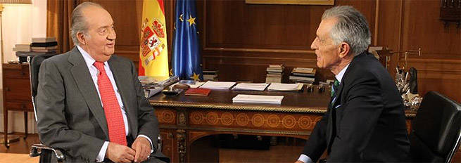 La otra noche se puso en TVE la grabación de la entrevista que Jesús Hermida le hizo al Rey, o viceversa. Ya se ha hablado mucho de si la entrevista estaba preparada (obvio), de si hubo ensayos, tomas falsas y cortes (evidente), de si las preguntas evitaban temas peliagudos (indudable), de si Jesús Hermida se mostró empalagoso, lisonjero, engolado y prolijo (normal), de si don Juan Carlos parecía más viejo (lógico), o de si estas campañas de imagen pueden resultar contraproducentes (elemental). Pero yo he querido fijarme en un detalle, justo al final de la entrevista, en la despedida, que me resultó sorprendente e incomprensible. Y sobre eso he escrito este soneto.