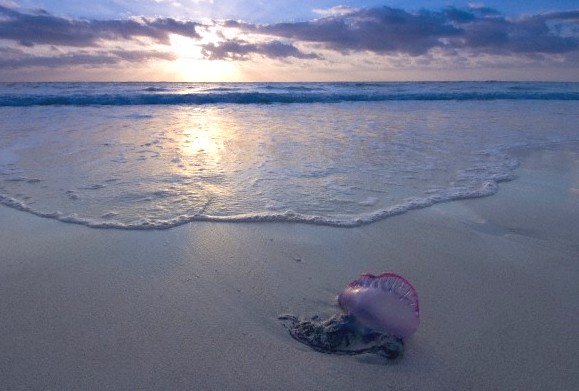 Varadas en la playa resultan tan extrañas como lo sería cualquier criatura extraterrestre surgida de la más fecunda imaginación. Nadando, en alta mar o frente a las costas, gracias a su campana flotadora de color azul índigo, las Carabelas portuguesas -científicamente Physalia physalis- parecen diminutos barcos que flotan con su vela desplegada al viento.