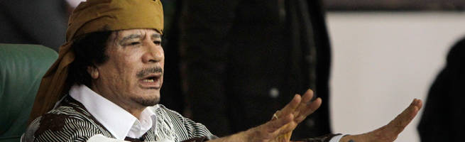 El 20 de octubre de 2011 un grupo de rebeldes armados capturó a Muamar Gadafi en una alcantarilla en la que se había escondido después de que su convoy fuera bombardeado por aviones de la Alianza Atlántica. Gadafi intentaba salir de Sirte, su ciudad natal y plaza fuerte de las fuerzas que se le mantenían leales, pero los milicianos no tardaron en localizarlo. A continuación fue asesinado, no sin antes hacerle objeto de cruentas y humillantes torturas, y su cuerpo fue exhibido como escarmentoso trofeo. Según la organización Human Rights Watch, la misma suerte corrieron su hijo Mutasen y otros 66 miembros de su escolta, ejecutados a sangre fría en los jardines de un hotel.