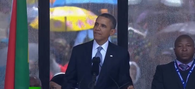 Se murió Mandela y lo único triste que salió en la televisión fue la lluvia a mares que caía en su funeral. Llegaron los mandamases del mundo con sus séquitos y el estadio se llenó de risas y bromas. Aquello se parecía más a una celebración de familia que a unas exequias. Personalmente, no he visto nunca un despliegue mayor de presidentes y expresidentes: estadounidenses, británicos, franceses… El asunto tenía un innegable carácter planetario, y sólo faltó Artur Mas para que alcanzara la categoría de galáctico. Todo eran saludos y sonoros abrazos, hasta que la atmósfera quedó en suspenso y un cañón de luz imaginario apuntó a la estrella que hacía su entrada entre vítores y aplausos, quiero creer que imaginarios también: Barack Obama, el niño en el bautizo, la novia en la boda, casi el muerto en el entierro.