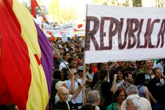El anuncio de la abdicación del Rey en la persona de su hijo y heredero desató ayer la lógica oleada de concentraciones a favor de la República. En concreto de la Segunda, cuya bandera tremolaba sobre las cabezas de los participantes junto con la de la URSS, enseña habitual en las concentraciones republicanas de la izquierda española, para que nadie se llame a engaño sobre el verdadero sentido de estas manifas. Entre gritos contra los Borbones y el capitalismo, los asistentes exigieron con urgencia la llegada de la III República con la bandera de la Segunda, fracasada por el sectarismo de unos, la oposición de otros y la desafección de todos hasta desembocar en la Guerra Civil. Como referente histórico-político, el ejemplo no está nada mal.