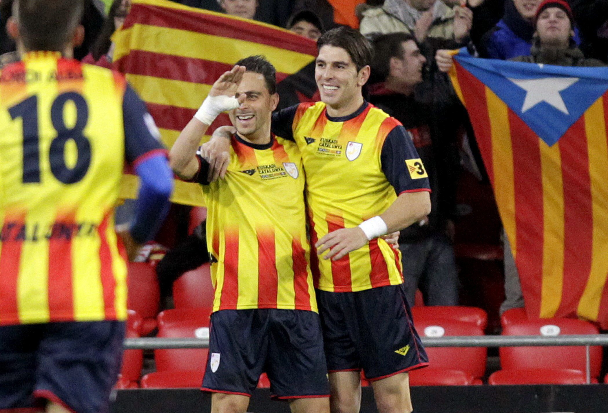 Suscitose el "debate" al trascender la alineación de Cataluña en la que aparecía Sergio García como capitán. El "respetable" catalanista no entendía cómo estando sobre el campo Xavi Hernández pudiera lucir el brazalete cuatribarrado un tipo que no se ha catalanizado el nombre. La apoteosis fue cuando el futbolista en cuestión, autor del gol del empate catalán, delantero centro del Espanyol y pichichi nacional, se dirigió a las cámaras de TV3 en la lengua de Cervantes, ergo en español. A partir de ahí a bronca en el Twitter fue de las de "trending topic". Las reacciones oscilaron entre el asco y la vergüenza con gruesas descalificaciones para el muchacho, natural de Barcelona, del barrio del Buen Pastor, distrito de San Andrés.