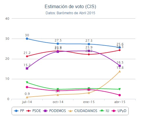 El caso es que PP y PSOE están sentados cada uno en su balancín: la caída de Podemos hace subir al PSOE así como la subida de Ciudadanos hace caer al PP aunque en este último caso sea más bien viceversa. Lo del CIS es sólo una encuesta pero los políticos son los primeros en creérselas y tratar de remediarlas o confirmarlas, más aún en el arranque oficial de la campaña electoral.