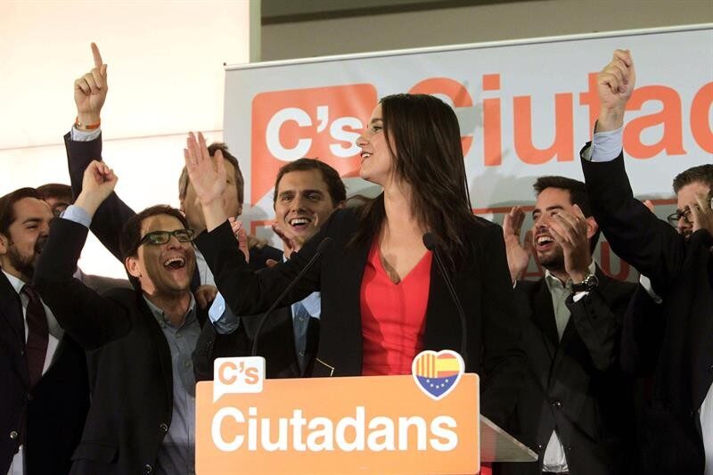 La noche del domingo Ciudadanos ("Siudatans", que decía Carlos Floriano, ¿recuerdan?) celebraba en Barcelona su extraordinario resultado electoral. Un resultado que a todas luces va a tener mucha más importancia que la de unos simples 25 escaños en un parlamento autonómico. Y se me antoja que los discursos de Inés Arrimadas (¡guapísima!) y Albert Rivera (¡también!) en la noche electoral, así como los gritos que coreaban los fans de la formación naranja, les han dado muchos más votos que los que se acababan de escrutar en las urnas. Votos en Cataluña y votos en toda España. Y si no votos, al menos simpatía. Porque a los españoles nos gustó esa celebración, un poco simplona y tautológica, pero emocionante, del "¡Cataluña es España!", y sobre todo ese grito que se puso de moda con los éxitos de nuestros deportistas y que anoche coreaban a voz en cuello Rivera, Arrimadas y todos los militantes y simpatizantes reunidos en su sede: "¡Yo soy español, español, español!". Por eso Televisión Española (¿española, española, española?) cortó la retransmisión.
