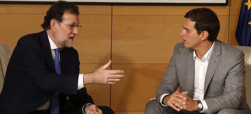 Ahora bien, no cabe achacar a Rivera, como hacen el PP y sus medios afines, la principal responsabilidad de que el acuerdo no haya sido posible. Mariano Rajoy, que ya ha demostrado sobradamente su carencia de un proyecto definido y que sólo busca adhesiones para permanecer en el poder a toda costa, está hondamente satisfecho con el resultado de la reunión, que pone sobre las cuerdas al PSOE, precisamente el objetivo de su estrategia desde las elecciones del pasado 26-J.