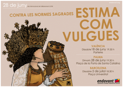 Izquierdismo, separatismo, homosexualismo…, asuntos bien distintos que, sin embargo, aparecen crecientemente unidos en un difuso pero insistente proceso de subversión. Ahí estuvo para demostrarlo gráficamente aquella campaña (Estima com vulgues, "Ama como quieras") de la organización socialista e independentista Endavant que, para promover la homosexualidad como actitud revolucionaria, representó a la Virgen de los Desamparados, patrona de Valencia, fundiéndose en lésbico beso con la de Montserrat. Nada original, por otro lado, pues la admirada Charlie Hebdo lleva décadas publicando todo tipo de burlas y ofensas contra el cristianismo, por ejemplo a Jesucristo sodomizando a Dios.