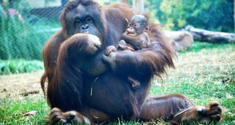 Sabah y Surya son madre e hija y se prodigan todo el cariño que son capaces de desarrollar las orangutanas con sus criaturas de corta edad. Durante los dos primeros años de vida los bebés no se separan de sus madres que los abrazan, cuidan y asean como lo podría hacer con sus pequeños la mejor de las mamás humanas.