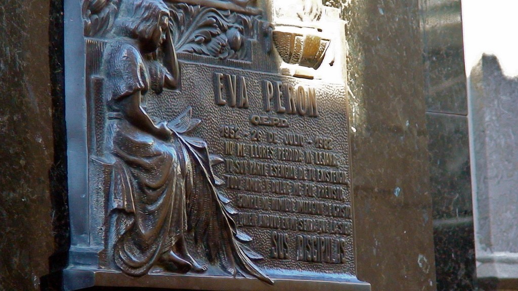Evita ocupa un mausoleo en el cementerio más aristocrático de Buenos Aires, la Recoleta, rodeada por los opulentos panteones dinásticos de esos oligarcas que tanto aborrecía y lejos de sus "queridos grasitas", como ella llamaba a sus adoradores.